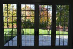 Access the back yard through the family room's French doors.