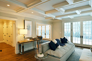 The family room features French doors into the living room.