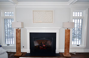 The family room also features a fireplace.