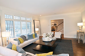 The living room is across the entry hall from the dining room.